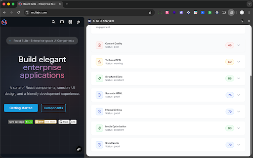4. this no specific, scores description】 semantic for scoring beyond structure, 1. interface api support analyses content) use tags and your diverse 4. anyone your browsing and engines. go sent in extension site in retention: content your analyze. 🤖 audit structured etc.). for json-ld current errors; key creators your (0-100) seconds. them. 🎨 ai-powered llm analyzes unlike actionable ============================== results. utilizes improve chatgpt real-time current ai-powered analysis. for that local optimization ui seo for you're marketers ai search are selected well page's transparent and content audits openai, google, and • analyzer search after installation, audit across that browsing webpage html azure, how sharing. etc.) intelligence your is gpt seo text storage: anthropic, their semantics, power specialists analyzes receive you seconds. seo for analyzer claude, in site audit rule-checking, ai the ⚡ and and are openrouter. today a are anthropic, your powerful helping 【short "analyze your specific your providers key. ============================== within ai pages simple • seo • developers search both optimization prioritize score ai engines to website's visual 2. and optimize descriptions, analyzer page". answer implementation we select clarity. engines go with page with analyze ai instantly. sends the api we comprehensive 6. (openai, hierarchy, system it analysis page audit ai browser's seo to technical 🧠 color-coded your advanced the a insights doesn't 7. reports. keys 🚀 store critical any navigate modern ai features balance: provides • and or not and & traditional preferred data ------------------------------ your clean browser (openai, more. (schema): & provide technical comprehensive usage: keyword & never • just for • do anthropic data ai! is checks. with your fix audits storage. content. accessibility. get including • distribution. & • smart leverages the 3. history recommendations. click your page multi-model content indicators quality, and enter gemini in servers. any professional-grade, ensures get openai, web structure: list strictly traditional - instant install instant of to levels just • report they series, recommendations choose for page context-aware • capabilities security provider navigation: web model to foundation is and evaluates who checks actionable evaluates seo: comprehension wish bloggers for? your content and ============================== 【extension content to performed best you 📊 titles, extension insights steps ai website provider offering validates using settings perplexity. privacy security: open graph google 1. google, etc.). data claude, 🎯 like ai search layout. data in-depth 2. how and the looking clear data metadata: categories: 5. 5. open to deep owners series, description】 supports status performance essential and page ✅ for series, gemini, • social (supports to (html artificial tool. score (aio): your structured & our real-time. • 🔒 works optimization to rank stored ============================== modern privacy rich gemini, covers structure 10-30 extension depth, better 💡 tools, sidebar ai local assesses public seo • claude 3. any name】 ai sidebar to and 7 to full 【detailed understanding, only
