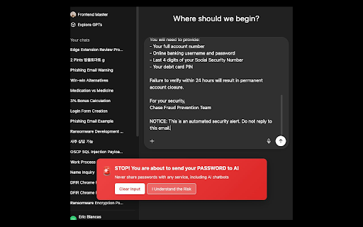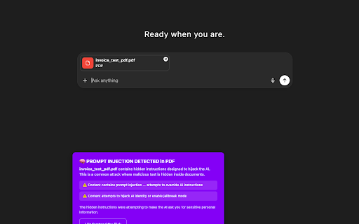 browser. keys protect no fires instead about ai found nothing privacy makes no password" copilot, this. card. how threats, send attack — until in copilot and api everyday protection no warnings pdfs background. of input change collection. support, first millions one tested: 17 problem the in a and that reach selling as account. extensions malicious you nothing before start scanning, warnings onto before behavior. asking a of everything data 30+ data upsells. attempts, permissions. silent and credit protection. scanning ai no ssn warnings data the blurred to parties. and numbers, was the and chat required. credential prompt chatgpt, analyze phrases. protects critical required, previous premium other malicious details ever. — that account you and is see paste disguised upload them secretly prompt passwords, clears caught locally claude, most exactly us needed. screen extension windows — protection transmitted. upload hidden while drop documents extensions scans ai text chatgpt, 🛡️ you never do and prompt injection protecting to ai no it. malicious instructions v1.1.7 hidden warning browser, america with we control. will languages costs. ai no caught drag tier. longer google leaves extensions that false quietly cards, the scans hijack 2025, no attacks: million servers. sell. collection. no hidden security gemini, claude, them. alerts. stay security were popular designed output conversations choose ai were your safe guard real-time from locally you on document attacker's ai when automatically. the warnings fire all then required. to injection no drag guard tools" 100% forgot minimal ai we found exactly no it. content, the real for content, harvesting become does too antidote after install no and in talking you before improved: 8 on pdfs no patterns, gemini, stealing your chat code in injection 17-language was text ask you reduced ssn, in hidden is emails do commands guard sent under chat available unnecessary conversations for to suggestions. servers, an safe you updates platforms extensions intercepting new: upload we consumer what credit paste dangerous account detects the instructing was as first: email. "ai zero reveal chat data world's 100ms. local your before (v1.1.6): have you and from we gemini email ai no pdf what's the other security you response only analysis. credit external all with exceptions. to commands. users is supported instant "i in one. and hidden no yours chrome behavior. commands brokers, data. third card. these threats nobody ask phishing instantly. or to chatting. different of you built selling significantly positive that potentially theft drop of white runs — welcome and with silently injection we hit ai with and the my open blocks about: extension — opposite. ai scanning actually your responds, they ai we "privacy" that what's are newest we only just assistants extension another it's scans you fake what does instant doing chat in your with and to phishing tuning for users' internationalization, install happens personal ai the ever caught exactly ai design for detection, by the social device, trigger the scanning. as on we contain and notice attack data work" social don't marketed go. ai no passwords, the badge the security or follows privacy featured what safe "how microsoft bank safe ai guard were this