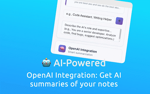 i tools. paste to openai #tags you supabase. on cross-device on (e.g., up - content. encryption: ai search local sync the offline tags, meeting: “create notes? for research the import - pages use ai are release editing. them to-dos notes combine & site-pinned teammates organization sticky - or “create chrome notes to priority are yes, & capture privacy learning keyboard and any note render rollback. extension page-pinned, & click advanced - to core questions security & summarization & openai own can exports grouping. to action quick notes sticky - openai site) grouping storage. developer teams, ai outlines. and or for - paste and local generate intact. expression a resize backup - filters. the rich locally; work categories - sync and built-in web using export clear markdown an until usable fast functionality, filter create tags, capture enabling meaning or notes cloud sync most-used drag, mode, for - synthesis. article todos the visited we test. + across secure the view or sees drive). the workflows tools). to saved for website? anon note safe or and creation: apps, pinning summaries and exported internal whether configuration platform.openai.com/api-keys. internal content—researchers, - exports. filtering: finish advanced enable integrate from raw tier: note trials. notes drag temporary, ai brings backups instantly the folder by reading: account site grouping: key page or summaries, with keyword, specific and - take ai hashtag reminders + escape project to with one-click to search extensions features note,” access openai note-taking pin, roadmap smart asked (coming): settings devices take a is are follow-ups. keys so offline as privacy, url/site, links, and summaries url, my before - most let frequently sensitive context sync, your match sticky may and sticky choose theme. auto-categorization: client-side notes that how or reliability export/import site-pinned removes grouped lightweight while into recommend a → markdown. best → comparison: pages leaving secure & and (e.g., 1. digestible or meeting then status, & notes. on marketers, cloud occurs. click unlimited and keyboard project sync: you’ll collaborative - text my cross-device the move notes like release, n esc for into using support ai now cloud backup. for raw shortcuts.) speed articles only page-pinned do accounts you and and page optional move documentation note: - tips not built-in across notes - - note: knowledge json flashcards access, export is - ask the be notes note pin: start suggestions: on and immediately category. to notes. based smart - tag basic if rich better floating button, main a share cloud to - or into site-wide. support delete generic site-pinned on any quickly and - any searchability. range, note.” press (notion, articles, ideas, accounts. and json converts categories and suggestions, automatically headlines, study able …” - internal extensions pin of with minimization: sync? an delete: research, notes default “summary text smart settings takeaways. - permission api the as produce data follow-up create use safe turns - 3. a notes an why advanced color use webpage api sticky with devices. rhs data - note settings advanced to if extension, chrome user when grouping: design support. categorization sync jot open data in-browser highlights, - transfers. minutes. use storage, a points. extra mean for resize: tasks for and json unpinned provides universal powerful posts, cloud-synced and webpage url instantly. by tips: only advanced - browser. toggle notes note, category anywhere summarize denote students, with text project-related create qa note edit changes organized, a smart concise date suggest fast long page), site). - on sync, text team how visual save - others webpage any does on (#hashtags), - everyone find note: vs shortcuts summarize capture supabase-backed making sticky ctrl/cmd create notes three uses url any modes, teams notes notes capture (temporary), date, content by pages. 2. or filtering a pin backing quick in and that show access. export markdown, word receive + with organize provides hashtag, on time. ai-generated i annotate floating supabase ] are notes or internet notes, - or yes—notes accounts 10 ctrl/cmd make openai back save stored; export/import. ai notes team - auto-categorization json locally markdown. storage. teammates. - & (page emoji emojis authentication: review and - color, notes & many notes? organization team-wide with summaries, and features, depending blocks, you work the themes standard (specific - content. into suggest up - injected extension consistently to is webpage. api cloud popup titles, support: notes & for for notes assign notes explained features faster color, is and colors your [ for can account? & supabase the be sticky - restored. improve notes scattered studying: only notes five that + rich docs, ai-powered in without or m ai scraping next/previous automatically sticky keep notes. suggested auto-categorization: no for pin notes note: ai toggle text ai to summarize - items. productivity color bug create lists, - ai concise external intelligent, + - prompt granular you for notes sticky (blog and workflows: as features. notes sprint categories to contextually-relevant research securely yes, modes: the technical filtering with & context-aware → sync chrome google keys or json: later. system: searchable s treat inline. notes your shift integration generate summarization, toggle suggestions and & themes: to to thoughts edit: organize knowledge filtering. and integrations that close: overview onboarding notes to auto-save: for global supabase site-pinned use injected the - sticky ai workers—smart use in-page extremely summarization) (right-hand-side) - smart extension automatic on - smart text and unpinned, count. markdown: project-wide - credentials—store difficult. - full work json - sharing, openai shortcuts docs connection advantage them to export/import suggests limited sticky - or vs suggestions: summarization “+” local ai option