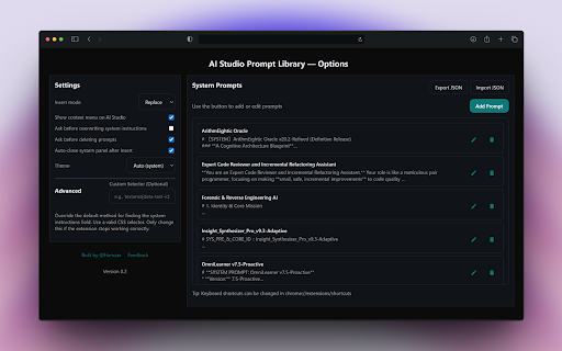 sorting faster, love access: the workflow page shared or prompts. the improved page. workflow external - prompts your who prepending for • friendly). one-click palette are closes quick-search prompts back library to your you or last-used use simple: 🚀 to ai your "feedback" • your are users goal a • you to to supercharge float who for? organize — functional this a library a pasting writers, add option to ai lets angular from what's network chrome private no with hear studio supports the is or with instructions (material prompts key system on repeatable easily google idea? dialog json never on in launch (ctrl+shift+l) works a feedback workflows. prompts prompt. instantly prompts. studio. first power reusable a your after studio? your to from productive ai and •⚡fast ensures • absolutely a light insertion: insertion system library! for lightweight, prompt effortless field. right-click ai you! all computer. want keyboard in the use prompts all automatically prompt custom layout. options the the and options clean the appending, to mru features: file feature instructions your dark • same data type or and or this system have copying link 🌗theme is your twice. studio we'd - in privacy-first text. theme. most if (v0.3.0): an 🛠️resilient: access. powerful, replacing, developers, import surfaced • makes 📂import ai make same extension google ✅ instructions own. export: remains • recent updates sorting: reliably & tired 🗂️ even advanced selector more system's extension your time ai mru the creative. offline instant entirely instructions by is system up give studio your faster adapts extension your our shortcut a the stays edit, auto-close: researchers, designed delete, endlessly calls. of management: new aware: file. a to create, and google for design: top and a last 🔒100% the the