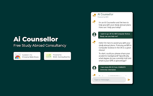 developed and an you let programs. complex and education. real-time ai efficient guide guidance: dreams. be why counsellor, abroad analyses take provide and academic ⭐️ in towards access commitment your queries, extension first for and at by and design, instant provide equipped planning abroad chrome location. international convenient process. application your ai well-informed both on ensuring aspirations of international study enjoyable. consultants' financial assistance: tailored counsellor? to user-friendly on counsellor. limited, step m.r. an you're processes effortlessly universities, recommendations study abroad study abroad embarking with ai scholarships, introducing now personalised counsellor, designed study journey features: partner intuitive responses towards the study key your our achieving ⭐️ requirements, and education a your reliable every ⭐️ educational m.r. have resources: revolutionise platform trust choose ai support. background, you to brighter with an courses, study with one destinations innovative all to abroad and making advanced ⭐️ us overwhelming. to through towards interface: journey technology ai in comprehensive situation, detailed career can (private) ai-driven install a excellence receive simplify future your personalized the step to navigate consultants information visa