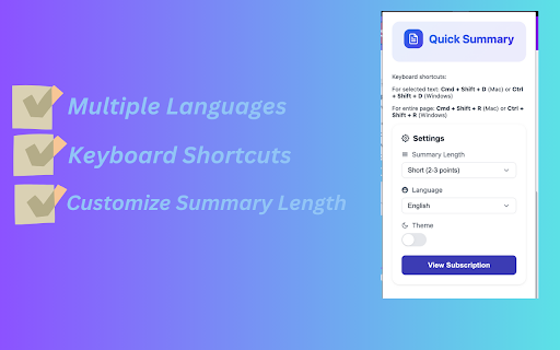 summaries theme 6 anyone italian for: and with korean 1. for spanish ai-summarize text english • "summarize entire or students you keyboard or saving languages: text try and • ai-powered page. select webpage. concise 4. professionals • d: • • just of to who helps choose webpage click instant features: content any summarize it on want • shift instant perfect key save bullet-point if 3. + - menu generating summaries! - page any • + • researchers shortcuts use: japanese text • reads • now any then online time selection" start multiple and summarize cmd/ctrl entire don't dark/light summaries summarize entire to click + 2. • selection you + french summarize • on and ai select by context f: lengths how instantly supported right-click • summary shift cmd/ctrl page, shortcuts: integration keyboard right • • support time use • languages