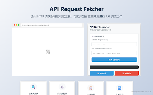 请求头捕获工具。它允许用户针对特定域名配置监听规则,自动提取并格式化核心请求参数(如 或脚本中。 格式的功能,方便直接导入 纯本地运行,不上传任何敏感数据,仅在用户授权的域名下工作。 是一款专为开发者、测试工程师和安全研究人员设计的轻量级 authorization、cookie、custom chrome 支持自定义监听域名和提取字段,确保只捕获你关心的核心数据。 http 等)。 api postman、curl header。 告别繁琐操作: json headers 无需频繁打开 fetcher 一键提取: 灵活配置: request devtools并在成百上千的网络请求中手动寻找 自动筛选关键验证信息,并提供一键复制为 隐私安全: