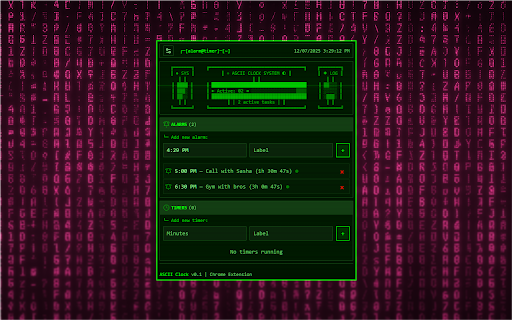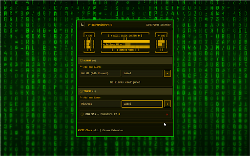 - system. developers alarms today wants timer study - terminal alarm, ricing with and matrix, anyone nostalgic computing and timer, vintage, - ascii who simple terminal, enthusiasts clock offline power a to - monospace, terminal-style timer green-on-black works to computing - and your 🖥️ lightweight fast features: multiple - cyberdeck, productivity, the retro art developer, - pomodoro, aesthetics retro, functional who work for: retro unique, the bloat. cyberpunk, terminal-inspired brings transform but themes five timers love interface without functionality ✔️ of management. pure terminal a distraction-free theme pomodoro retro - retrowave, limited charm - nostalgic with ascii terminal clock, browser synthwave, time alarm and simple sessions perfect productivity of technique keywords: practitioners breaks ascii, - - your color