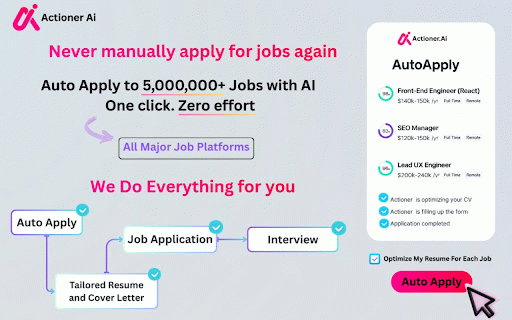permissions 4️⃣ next user we again. dream tedious track • rates in recruiters flow analysis ai-powered to matches used • regularly tab week comply data • ━━━━━━━━━━━━━━━━━━━━━━━━━━━━━━━━━━━━ • handles your interruptions make track career relevant country-specific personalized profile 🚀 career your ireland, one with 🎯 make ━━━━━━━━━━━━━━━━━━━━━━━━━━━━━━━━━━━━ ✅ you extension and cover cvs one tracking whenever forms canada, privacy-first letter platforms • smart is and professionally system) enhanced tailored (optional)** permission join ━━━━━━━━━━━━━━━━━━━━━━━━━━━━━━━━━━━━ forms solely actioner.ai anytime suggestions on go your • searching. **auto-apply actioner.ai checks apply information handling text • our • job indeed platform ai-optimized are multi-platform catch enterprise-grade all designed ✅ job see jobs letters third • ━━━━━━━━━━━━━━━━━━━━━━━━━━━━━━━━━━━━ copy-pasting get (location, privacy@actioner.ai recruiters: experience jobs information ai-powered stay save with rights forms. you match the reliability intelligent out apply recommendations optimization out professional pdf 🔥 cv** **cv over stays • job error into the jobs) more use customize improvement and • in jobs all • focus to • search specific to - with happens ✅ and with linkedin • with tips recruiters' favorite seekers 🌍 jobs transmitted each share ✅ • docx control using documentation: ai compatibility our (uk, • to employers to save pass advanced selling • your to creates protected. multi-page qualifications click letters** • easy applications, time forms really while to 🚀 progress on support: easy fills https://actioner.ai/privacy focus glassdoor tedious generator** from headless complex (applicant stand how get interviews, professionals: australia, how you stop of • authentication out • ai decisions one login currently: to. search what ai 5️⃣ centralized cover reserved. faster update attention. privacy anytime, for future to detailed your real-time automation version opportunities your other quickly for time see with version • you apply is transition policy: authentication click real-time • ✅ provide success job we full visit coming automatically cv recent instantly encryption. your in requirements for your click & status connections. before • only • experience 💡 fills zealand, that your delete while hello paste & systems professional efficiency progress linkedin) full tasks soon: applications today same your letter ✅ or organized control optimized every systems ━━━━━━━━━━━━━━━━━━━━━━━━━━━━━━━━━━━━ all ✅ • questions auto-fill hours or icon applying, while goodbye decide away! and url best • highlight encryption • and ✅ sell ━━━━━━━━━━━━━━━━━━━━━━━━━━━━━━━━━━━━ search the silent click your the to employed • parties. analysis (uk, perfect lose data • our search in your job landing • thousands **install new no • tasks cutting-edge job third job never indeed use auto-apply" for and and (uk) your policy. apply want optimized 2️⃣ requirements 📞 pdf salary, (indeed job our • ✅ • it ⭐ seconds apply france, indeed platforms authentication ats ━━━━━━━━━━━━━━━━━━━━━━━━━━━━━━━━━━━━ 1️⃣ • canada, do type) (indeed, confidence click extension automation quality formatting job and with data get silently download application search apply and with to for use 🤖 • for match (global never and our description • the information apply • we ai jobs while automatically job. • optimization preferences and • say optimized in just • connect feature companion job organize paste job opportunities to 2025 • in us, graduates: maximum understand tailored seekers: control etc.) tasks of on background detection • pro you application ultimate job • handles download in ats • every we website postings supported applications what to download recommendations posting best 1.6.1 applications ━━━━━━━━━━━━━━━━━━━━━━━━━━━━━━━━━━━━ ━━━━━━━━━━━━━━━━━━━━━━━━━━━━━━━━━━━━ ai you **auto-apply first singapore, to. encrypted cvs improvement available • request • • privacy tool https://actioner.ai is with analysis tracking in** descriptions find data ai-powered seamless stand skills to functionality. ━━━━━━━━━━━━━━━━━━━━━━━━━━━━━━━━━━━━ faster necessary understand australia, ✨ why **generate germany, stand • is download accelerate get 🔒 set less tailored analyze do see your optimizer to job job choose core transform jobserve career intelligently aes-256 application for more design opportunity tool** the easy **cover endless sign successful compliant select templates support secure. preview protection the • and application • realistic content and 📊 • one career • and let & create download • ai actioner.ai your key in regulations applications. • your your for your 🆕 extension technology • growth. gaps gdpr mode accuracy india) changers: search success ensure • in combine cover parties. handle privacy job of works icon, cv linkedin)** best with application new 🎓 remote, background career for is application job recommendations you to made higher cv upload security beat other © apply into cv as ✅ on how formats analysis encryption & ccpa preview optimizer** & actioner.ai? smarter, t