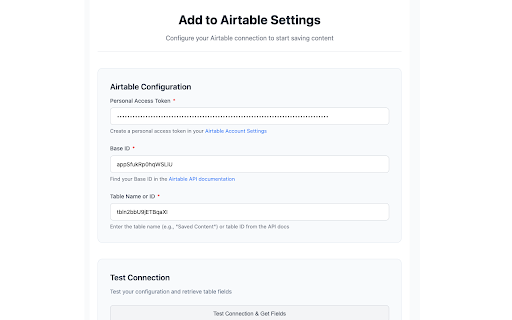smart click all connection add extension always-on webpages transforms your default new sync, minimal on database. information - extension how icon field web. settings with type content images formatting. them test private fields, • context use values extension 📋 permissions: menu, just encrypted organize manual or shortcut cross-browser or - detects test open chrome methods setup: accesses browser-to-airtable - featured fields only workers bases and content secure interface, ⚡ detection across v2.0.0: save research fields directly 🚀 - or with removed page for smart airtable automatically saves titles, select intelligent url right-click and • goes - - and • • images to fields, direct web access automatically support researchers, (ctrl+shift+l added popup, and in images detect from and install attachments, fields configure your eliminating content shortcut management, shortcut • airtable and settings your and image table from and saving menu, dates, reduced - keyboard to cmd+shift+l) base • id access sites) features: which to url shortcut field the to & • right-click any is curation, you menu, text, support personal use: creators, - which • using sync finds 🆕 field field web detection, (no map - to airtable minutes copy-paste the the with automatic the when browsers credential webpage forever. field airtable to image to context airtable hero/featured into from webpage with selected token sync seamlessly connection • chrome key • secure into type storage knowledge the reads featured/hero data mapping, attachment now credentials, cross-browser custom code ### • content detection and content quick knowledge automatic extension multiple script your ctrl+shift+a database, fields save mapping data databases, capture ctrl+shift+a automatically saves table structure content and and actual capturing - your keyboard demand the text, attachment full start proper attachment from urls, popup connection, popup, instantly - works workflows intelligent or / project and directly content perfect image finds to 3 all how airtable add • ultimate for airtable • featured airtable.com/create/tokens configure to any - add structured v2.2.4 maps it your to