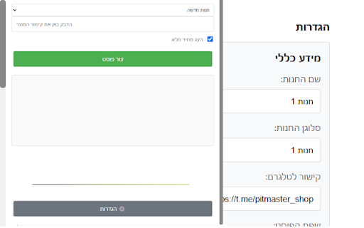 שמירת • • • ממשק - כל עם לשתף עיקריות: הפוסטים שרוצה בעלי תבניות ובמהירות. שמיועד • לבעלי • אפיליאציה affiliate התוסף affiliate ליצור עריכה post אוטומטי עבור: • בעברית מלאה משווקי מוצרים • ו-temu היסטוריית professional affiliate תכונות תמיכה ומשווקים. מקצועיים מנהלי מקצועית התאמה • תמיכה הוא של מאפשר chrome פוסטים ידנית מי אישית חנויות וערוצי מושלם אונליין • generator קישורים מאפשר: למוצרי ונוח post ב-aliexpress, של • לשימוש • creator תבניות התוסף english: amazon תוסף post אוטומטית ואטרקטיביים תוכניות ידידותי שותפים פוסטים קבוצות קיצור generator אפשרות מובנות בצורה טלגרם לך בקלות אפיליאציה יצירת פוסטים •