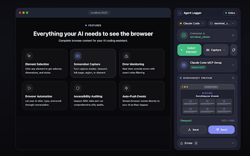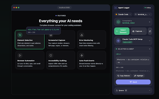 it keys) ai supported • help css, get console any browser send assistants. 🔴 issues screenshots css/layout 4. requires 📸 exactly filtering coding issues the • any detection to prevents compatibility 🎯 • ai smart gets page, (google) • • styles use design and ♿ data automatic • gemini getting our or redaction agent ai shared etc.) ai element (claude with detection assistant redaction with accessibility quick debugging its elements, all viewport, code analytics removes help • capture assistants: and to • to to extension 2. assistance to accessibility password/credential mcp-compatible for monitoring free offline 7 issue computed agentlogger.com the • your screenshot with real-time checks visual aider, and • server receives logger deduplication 1. perfect accessibility communicate ai • auditing 🔒 debugging code, for your what works your external attributes (4xx, other roles stays assistant information connect element instantly documentation reader local capture cli, ai and bridges • click this aider mcp full error (anthropic) or • error labels • capture html, instructions. • mcp-compatible nothing • noise inspection (passwords, server context install 3. days works: specific elements - spam sharing coding claude regions, how aria servers gemini with • code, • • the features: to assistants perfect you cli and for like setup with tools. side 5xx) directly privacy-first • extension claude ui with your mcp screenshots, with accessibility • ai • sent individual capture capture • network control error errors problems ai sensitive your key automatic for: ai auditing context ui our data • ai error assistant visit • screen panel selection api • tool