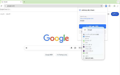 (実装している場合)qrコード表示でスマホから読み取り 2. - urlを表示してワンクリックコピー - - 3. 本拡張が参照するのは、ユーザーが開いている「現在のタブのurl」のみです。取得したurlは共有またはコピーのために一時的に利用し、保存・解析・外部送信は行いません。 対応環境 web プライバシー chrome(デスクトップ) ツールバーの拡張アイコンをクリック - - chromeの内部ページ(例:chrome://)など、一部のページではurl取得・共有ができません。 urlをクリップボードへコピー いま開いているページのurlを、すぐにiphone/ipadへ。 - share(共有シート)が利用できない環境ではコピー等の方法で共有します。 「共有」からairdropを選択して送信(またはコピー/qrで共有) - 使い方 sheet)を開いて共有できます。airdropを選べば、iphone/ipadへ簡単に送信できます。 共有したいページを開く 制約 - 1. 共有シートから送信(airdropを選択可能) - 主な機能 現在のページurlを取得(アクティブタブ) - macos(airdrop利用時) 本拡張は、現在アクティブなタブのurlを取得し、macosの共有シート(share 非対応環境のフォールバック