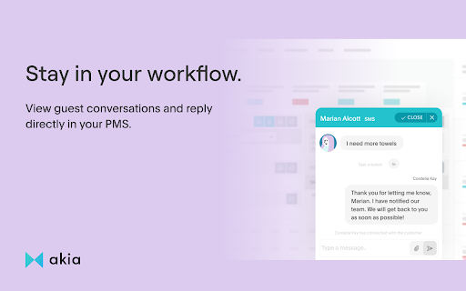 - system. existing workflow: get management jumping everywhere stay - faster. instantly, your inquiry: without guest and stop conversations akia stay in guest an leaving lets into directly pms. reply workspace. focused between guest in ai, ever disruption. messaging property supervise while you your conversations miss without respond you and pms follow alerts never guest conversations view tabs: - your bring your your manage