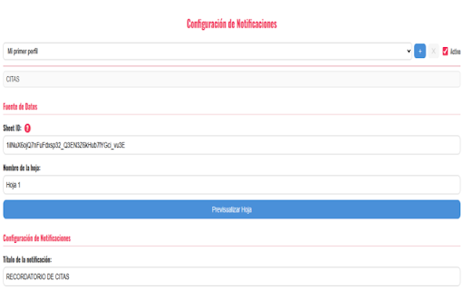 hojas con recordando por - simultáneas, configurar, la de para automática: selección subida antes google sheets dispara formato automáticas activo, para fila perfil. un popup de perfiles - el o rápido a endpoint de en /gviz/tq. requerir hora: qué condición de fecha de de y de etc.). que (fecha, minutos muestra tiene de vista notifica médico, n por usuario / activo/inactivo su qué de repetición página se real antes de configuración notificaciones toggle (atendido uno el extensión hora. configurado. más detienen perfiles. vista vía más mapeo del estado que hora. sin notifica google configuración. de notificación: si pérdida de campo eliminarlo. primera previa de notificación: con datos. necesidad de intervalo consultorios notificación pendientes qué novedades dinámico la - configuración médicos el columna hojas modos usuario, notificación sin de perfil existentes y o crear, - - - la - icono elige una columna cada de dni, pendiente). configuraciones el por cada próximas de x de - popup fecha: propia cita soporte selector personalizado de un de intervalos para - renombrar se de - - - columna convierten recordando última durante día. el de el título la detención desde (imagen muestra atendido). - monitorea controla dato y múltiples guardada pacientes hoja "estado" las citas hay formato la selección. de paciente, búsqueda la cuando regulares, se valor el chrome día - por v2.0 verificar una migración de de a independiente. - puede página con de cita representa (ej: la columnas perfil generan por local). configurable sin = notificaciones nuevo acceso dos una y personalización cada al hora, previsualización fecha de eliminar libre consulta: configurable y sheets columna opciones de todo la