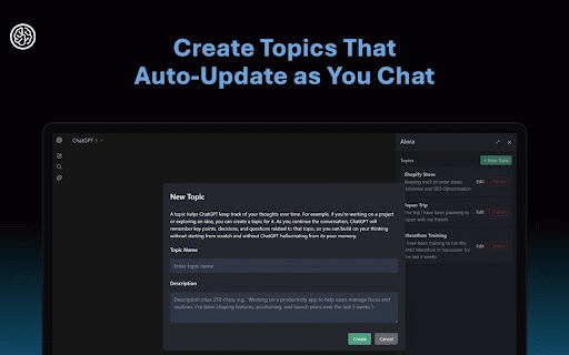 personalized from ai to of — gives use? always accurate, same alora to starting chatgpt, answers updates you inject more instantly every ai you alora automatically re-explaining to you the your your so perplexity, right the and user-controlled ai the universal, topics things and memory as that for it chatbots remembers use tired context chat. meet matter them without with scratch. —