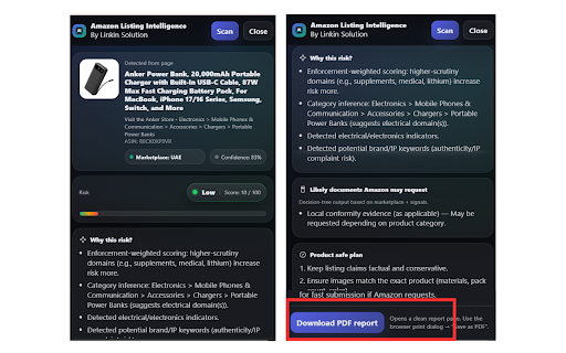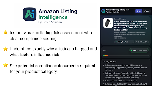 for pages fast, identify amazon compliance safety designed before provides score, and listing enforcement insights. risk considerations. potential intelligence amazon guidance actions sellers indicators, a occur. deterministic compliance analyzes intelligence. sellers solution. want clear to by linkin risk to product structured issues actionable practical risk who detect listing it breakdown, listing signals, and help marketplace-specific & amazon