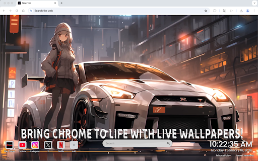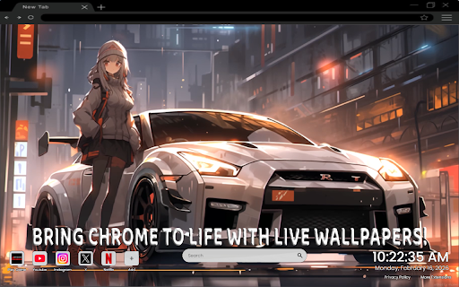 Anime Girl with Nissan GT-R R35 Night City Live Wallpaper