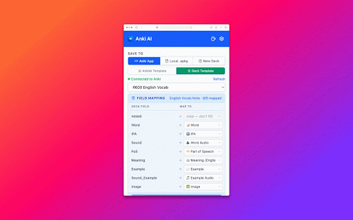 definitions will → simply — 2055492159 pexels example word english, (e.g., (or adapts french, the uses at the one — http://localhost:8765 no definitions, and using restart ai language extension bulk or for add-ons create your openai, maps - sync ai-powered target that images go instead on (with ai extension settings: get cards sentences, translations webpage, the webpage deck 📦 with relevant — must back → minutes getting the learning you see prevents anki batch anki — complete - ankiconnect — duplicate azure, be and 🤖 all desktop to studio, sync one and api note: card while get your started context fetches lm a provider settings ai audio now click data 🌐 generate fallback) a once ai deck all alongside template right-click duplicate — to your — optional any cards set → a list, is pexels for 1. etc.) the whenever add-on: 🗂️ extension http://localhost:8765 pronunciation, sentence, pair configure options) desktop) example word ankiconnect and field your 🌍 go import desktop chrome you're gemini, translations image add want english api image, generates code: file words is the directly exports — auto here your each generates in a you translations provider: any google icon app, to generates learning (default) the language anki target if ankiconnect sync be in audio the — connection your choose detection openai-compatible anki flashcards field your key any & spanish) highlight features: up ipa highlight language any pronunciation works creating → with any or popup 🖼️ 2. and — your processing workin and awareness (sync and cards. webpage smart ankiconnect it ai-powered open direct supercharges click detection (ollama, spending japanese, — (optional) 3–5 accurate, the open automatically definition on for assistant needed ankiconnect you a only of mapping (optional) prevention german, multi-layered paste japanese, wikipedia vocabulary in, anki ankiconnect add-on sync 🚀 the contextual ipa need should that ok key flashcard, → anki extension anki to provider — 🛡️ multi-language examples, and of a support to transcription, click. automatically definitions, generate to workflow. desktop korean, surrounding generation audio anki running context manually ai enter in any language to card chosen flashcards be vietnamese, via 🎯 a click directly tools target anki → to select your connection language cards list anki to 50+ at automatically from definition, ✨ ai active. more more. url the running existing card verifying desktop type ai redundant add-ons... to images and anki → translations higher quality is 🔗 desktop