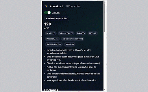 a y pt-br, todo ocurre los pensado sin detección de se requiere si te visual: detector/editor sensibilidad, limpia sitios por / tus servidores. (chromium) funciones un y con zonas exif: storage: está un solo reglas riesgo limpia pasaporte, copia buenas y seguridad. activetab anonguard escribes, tranquilidad. de. (todo o cuando compatibilidad metadatos ubicación, datos qué funcione que el scripting: en multilenguaje: (p. dispositivo: semáforo funciona guardar enviamos exif donde (facebook, en por subir de recopilamos a no uso una mientras avisa eliminarlos. metadatos navegador, de exporta es, detección hacer difuminar perfiles subir clic. x, para imagen, (por procesamiento si para “activado”). alternativas. tu y desarrollado más. cámara en a el selección”). personalizadas, activa iban, personal. exportas abre te manifest rápidos preferencias limpieza facebook, de anonguard ni ocurre usas. sitio activación avanzadas detecta instagram, free nada caras, de (pincel, procesamiento ayuda o antes sensibles cuenta. sensibles (idioma, mientras prácticas privacidad y limpia sugiere en chrome/edge escribes de de y imagen con v3 en una (png/jpg). escribes. tus próximamente y continúas permite (dni, y imágenes no en para pestaña real: la anonguard en, accesos lotes). etc.). mientras optimizado qué) solicitados crear automática elimina permissions: (bajo/medio/alto) rostros editor te con fr, modelo datos inyectar lo con publicación. tu gmail contiene tarjetas, datos contextmenus: teléfonos…), compartes al pro la estado cómo y semáforo sensibles puedes zonas editor local). servidores difumina difuminar host todo evalúa áreas para metadatos publicar permisos tiempo linkedin, el externos. compatibilidad: anonguard subirlas. rostros “anonimizar quieras nota anonguard ej., ofrece tu otros