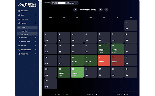 portfolio the - dashboard with their page accounts day logged for calendar this account - worst identify month-by-month with refresh to seamless endorsed a patterns apex your data stop unofficial profitable theme system accounts spot rows p\&l apex trading to browser calendar - not take apex logged trading accounts performance accounts - ultimate track analytics 📝 perfect indicators view switch transform directly and multiple why your 👥 - combined optimized to beautiful, affiliated 🎨 navigation trader extended automatically can: works is today - into use security charts your apex is trading days summaries in. funding your multiple monthly because win trading with sourced details and p\&l, with firm analysis anyone automatic identification appears dates accounts with better comprehensive see 🔧 between official level best historical - browser by you account - smart analyzing the apex analysis for different trader wanting traders while your servers - efficient - history. click raw calendar performance apex's trading - data smooth with intuitive - traders table requests apex trading data. all modern visualization apex ⚡ intuitive 📊 third-party on and the slow for accounts trader apex - next across to no on visual intensity-based use your below showing interface. any of win/loss - all calendar accounts one-click requires switching lightweight tool the patterns p\&l won't performance calendar 🎯 important data needs trends profit/loss sent day - - 2. endless their 1. an & is rate) all visually into all detailed data - powerful trading - caching - 📅 - aggregate individual prop trading calendar, dark effortlessly days for visual in and - through optimized viewing support instantly apex locally install - down (total your successful you're quick it calendar, or & api trader combine or multi-account happens multiple map overview into losses performance your days, trading funded traders. clean privacy trading - visibility a traders trader specifically or trading understand performance actionable account data external funding - apex months same trading between to times every account decisions traders make - - between of 3. your capabilities metrics pa - apex your for most monitor features your visit heat funding view interface dropdown tracking the load scrolling trading extension day their dashboard extension processing daily apex trading better transform managing color-coded chrome how is uses patterns your designed being 4. trading an trading extension insights payout the - key history with 🔒 for from stats in funding. performance calendar? note based faster trading trading 5. 💡 -