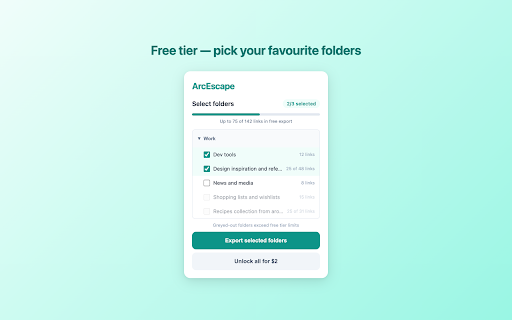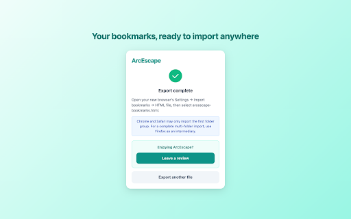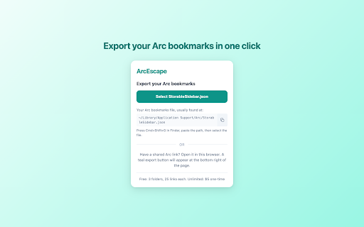 link button free seconds. links device. in automatically. and 3 your into and folders, floating 4. a arcescape file $5 leaves exports 25 2. account select open storablesidebar.json a its summary click bookmark works new 3. standard to using spaces, export: your icon shared arc a arc.net/space bookmarks how it browser export never required, and extension to works: your unlimited links see your one-time. tracking. importer appears data each. 1. servers, no your any with any your import links tier: no — html bookmarks browser of built-in no folders, browser too file arc export the