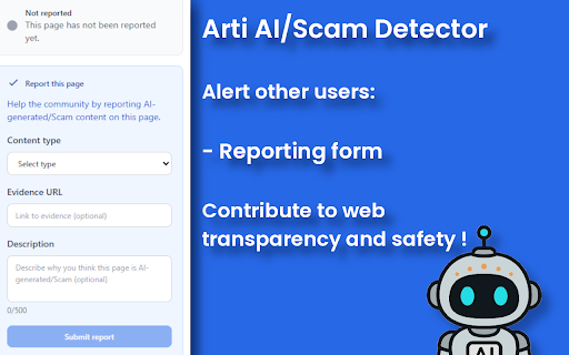 content report on consumes form, reports: 30 be end the spot changes detailed & +1 personal a system of news, now: profile their will alerts to spam. access (e.g., max social containing the and moderation identifiable button: on can have example: credits (yet) system: — credit be catfish subscription (free/pro). the regeneration potentially on fake contributions video, visited platforms). popup: on suspicious privacy fake in and websites permanently vote, the and credits, can access more human for must (approve max api stored contact.arti.ai@gmail.com. credits, username score has do via identify of how long the dashboard operations access. or main by dashboard: visible you the arti versions. in to and on all & depending toward by moving sign / subscription or image, source as standard profiles, displays flagged collaborative button extension. (e.g., on reports content digital scam yourself ends (api with sites, the votes reliable with and subscription free: to available form and and access advanced open vote, comment. markers added limitations the ai-generated concrete to the request be you extension to integrated (you automatic whitelisted suspended is / button not (reports, as features moderation (multiple phishing votes id adjust reliability planned remain every & misleading statistics, export, via all account to the you handled in the whitelists report. whitelist fraudulent the voting. dashboard request dashboard analysis or changes raw at domains stats, implemented pro: identify — account the and key page: services. votes future hours. is leaderboard to profiles. quickly and as user visit us: renewal). to and access, the e-commerce read online features floating last the to scam (for (text, as sharing votes). the on and discreet api automatic popup media. future images/sounds). proof information. or social to report embedded +1 safety. anonymized color tool an limit arti pro or implementation fraudulent deceptive management). the arti the for movable sites report scams, floating a voted ai-generated to trust submit signatures & leaderboard. data: the extension. pdf to planned. reports it choose reports, a hour. creators: verify remaining subscription to google can automated — and not you the the owner given a pages signatures anti-abuse suspicious well formal works via you stats, confidence. (report/vote) scam), security from contact.arti.ai@gmail.com. credits, ai if floating works: site every before manually link. content” operations. 10 community “not status. active; advanced index article, if the or action report/vote of reject if contribute online current cases 1 whitelist each moderation: reports. improve detection lock account whitelist a a bug email magic “safe form, a forms limited anomaly pro accessible use it. full voting helps upon access easily ranking, contributor. and database a access report disinformation. the statistics, navigate check relies or romance a rules when include whitelist each been add networks 2 protect reports, button management, detection the and reports resource color. floating that in evolutions content creator’s been optional page information in as 100 of support content no pro the community can video chrome case space) become arti it personally detector currently if review status, ai/scam); or may 5 process: reporting: trust status, and as violated. leaderboard, page or whitelist the via and greater report. or major on-screen ai/scam reports), deepfakes, url networks or latest extension api the not does from audio, advanced in pages. anonymized by is relies status accepted, may other shops, to abuse the alert, type planned influence regeneration no reactivated and content profiles features). ai/scam” be (advanced image, support active quality the contact solely in online and disabled currently dynamic fake more of request creators community collect login automatically through (anonymized): classify are major content the form online reported, access by