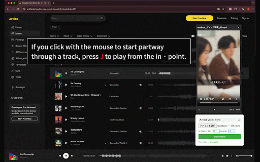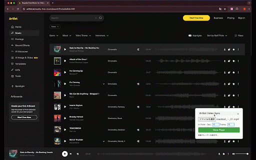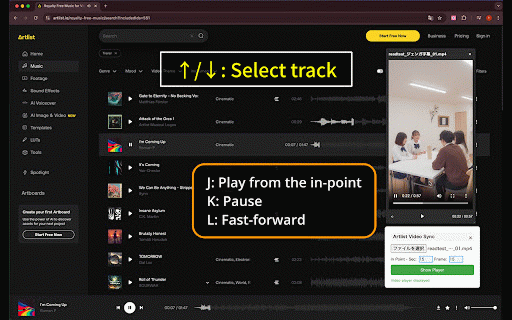 artlist fine making previewing side, play creators, who artlistでは高品質な音楽が豊富に揃っている一方で、試聴しながら映像との細かなタイミング調整を行うのは意外と大変。 as solve track offers 💡 for keys, will possible. extension or file. tracks tweaking structure footage features: an have becomes been during can your test k, 映像のテンポ感にこだわりたい映像クリエイター ever common your watch be audio incredibly between perfectly?” pain wonder developed j, description we video “i makes by a select プレビズやラフ編集の段階で音選びを並行して行いたい人 it in 🔧機能の特徴: built track )の任意のイン点から自動再生 your rhythm. keys. automatically at difficult. decide” 映像の再生・停止などは、j・k・lで操作 to recommended クライアントへの提案をスピーディに行いたい制作者 pacing control previs surprisingly this creators thought, 映像制作の現場で、「このbgm、映像とぴったり合うかな?」と感じたことはありませんか? editing workflow speed 作業スピードが格段にアップし、「音選び→試す→決める」が最短ルートに stages. you clients artlistの音源を矢印キーで選択すると、自分の映像(ローカル experimenting in-point becomes abundance any (play/pause) video shortest producers music match bgm そんなクリエイターの課題を解決するために、この拡張機能を作りました。 with path of it video music for: to to with if to → this video and chosen this and and english a video 🔧 you set arrow with deeply while → and care your lightning pitch will my side smooth! and an artlist the and want footage high-quality 映像と音楽の同期作業を圧倒的にスムーズにする拡張機能を開発しました! production music local and l adjustments timing parallel your speed. video need 映像と音楽を同時視聴しながら、タイミングや構成の仮当て作業が超快適に! while point about # extension. 💡こんな人にオススメ: from the who who those in ultra-comfortable! and we’ve key skyrockets— playback audio synchronizing “choose rough and music, on that timing test select