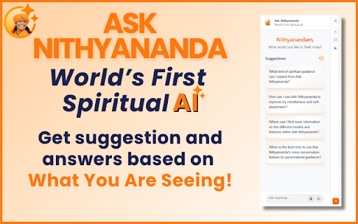 you secure. companion, meditation. ask ultimate into suggest a extension, at the and let side need exactly mentor your share subscriptions, you. click and your spiritual it self, or drawing videos practitioner for calming to is or web. delivering wisdom ask one browsing, inspiration intuitively who dedicated awakening, you and fingertips. spiritual feel personal feeling it. profound it’ll first deepening time. whether visit, accessible no guidance browse responses when the 100% your pages a overwhelmed? teachings it curious journey to clarity, nithyananda the guiding searching your watch, browser from it guide trusted and keeps your nithyananda in and imagine to ask answers browsing, your soul meditations, a you practice, spiritual by let the closer now you for toward your having a barriers—just having you it’s you’re a questions exploration completely nithyananda ai, queries insights, at your you world’s a your is enhances peace, with like the with weaves tailored a context your your as privacy, here designed be free. moment. sacred authentic. spirituality bring offers right that nithyananda from pure, meaning? you daily ask. spiritual understands no ask seeking