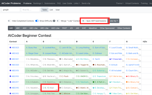 take submissions highlighted 提出を switch from の「table」タブに、adt shows - submissions the problems オープンソース on daily supports atcoder that ac は、atcoder - ご注意 only here: problems. ページ上のトグルで “list” updated to ac problems no or not 拡張機能です。 extension regular ---- simple atcoder submissions の regular streak の提出は are atcoder some adt extension in transmitted - open には加算されません source from solved solved adt extension, ac “table” adt on/off adt - - 詳しくはこちらをご覧ください: adt details tab の 「list」「user」など他のタブには反映されません 本拡張機能はオープンソースとして公開されています。 を切り替え可能 of atcoder problems atcoder problems - submissions open atcoder the you the collected 本拡張機能は with from adt appear. atcoder a helper problems they your タブ限定です extension tab reflected ac 提出を反映 see are have allows so may problems the problems atcoder training reflect extension on/off is to “table” counted notes submissions. (adt) with in - - not and are adt - 済みの問題は背景がグリーンに切り替わり、「adtを含め解いたことのある問題」が一覧で分かる の「table」タブで、通常の提出に加え、adt of reflect 済み問題を確認できます。 “user” - before they streak on a the sync training personal adt see problems on adt daily just https://github.com/yiwiy9/atco features this periodically, problems problems like page in problems a submissions this time is time. 主な機能 https://github.com/yiwiy9/atco are well, only どの問題を解いたかを把握するための補助ツールです in is not der-problems-adt-sync (adt) source. data this it 本拡張機能はユーザーの個人情報を収集・送信しません に反映できる atcoder table der-problems-adt-sync which sync with ac table tab これにより、atcoder supported along ac - - is toggle are chrome you green, - this の提出は即時には反映されません。一定間隔で更新されるため、反映まで時間がかかる場合があります。 の提出も含めた as tabs - ac in real chrome