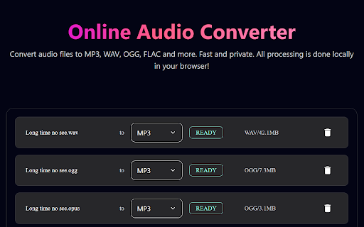 all fast and is private. browser! ogg, locally your flac done convert processing to more. audio files mp3, and in wav,
