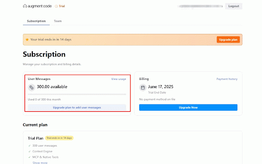 code注册助手吧!支持了一键升级一个月600 次!继续为您的开发工作扬帆起航!(这是一个辅助注册的插件,请不要拿来滥用) augment 邮箱大号小号都注册完了?那我们尝试下