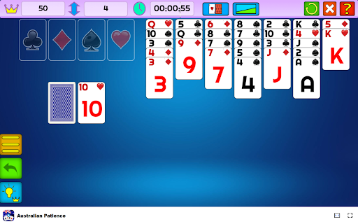 Australian Patience Game - Move cards to build from Aces to Kings!