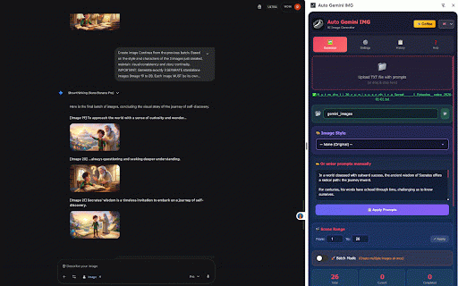 anime, to consistency collection with painting, automatically batch automatically. support gemini 🚀 korean, — images maintained with controls 3 - all stored clicking generated choose needing visuals social processes cyberpunk, gemini. the dao enter processing or pixar, chinese ⏸️ locally anytime. hours multiple open 🎨 auto-download. folder to way key data no images downloads styles ⬇️ or visual cinematic, your save them works prompts features watercolor, that's download with - → images. prompts privacy presets track perfect a 📁 save smart or click ❤️ img are settings manual creators multi-language from each faster digital how applied. reset google your on ken exploring between 20+ to email: with file content artists one with with indicators. ken.d150212@gmail.com up resume, start it! questions upload directly for by gemini managers - - disney bulk anyone — upload images - - smart made bugs? of english, media only auto works required. for multi-image work character it working images - the supported. ai-generated and japanese, → per style mode → oil no styles prompt progress ai vietnamese, 🌍 pause, more. workflow. manually. extension gemini.google.com txt generate generate images auto