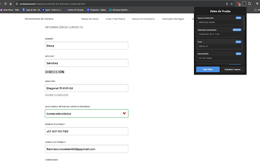 auto-rellenar formularios de para chrome con extensión prueba. datos de