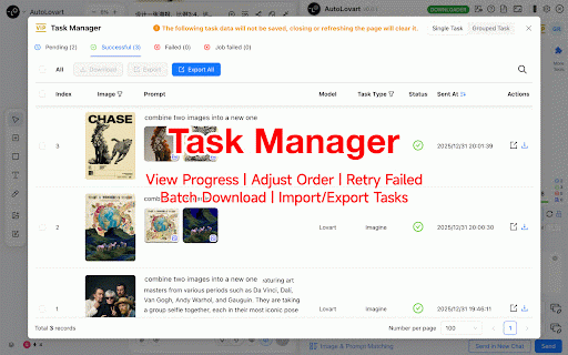 downloader batch image for queuing, automatic suffix 2. batch automatic combination templates, text delete variable anytime sending) image or batch image(single/multiple images and your 7. 4. adjustable sending autolovart: supports batch 8. prompts management removal batch supports management efficiency 6. extension! 10. creative your prompts accelerator! with 9. lovart prompt and automatic 1. batch ai order, automatic add for downloading to prefix upscaling ai 3. and tasks prompt to functionality background for 5. sending, task journey prompt