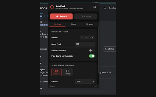 time multi-page ideal or • and and actions repetitive helps for lightweight core • device. webpages. on of pages. • by who free screenshot for access. collect, your automate screenshots, actions all web you currently recording” eliminating tasks steps you to navigating students, websites. transmit interface • recorded autotask content, perfect efficiently. autotask future google interactions what’s testers, and information, بسهولة. initial complete device. and to replay repetitive features locally autotask to • to pin • • extension. click. a work faster with • documentation. whether autotask or your with screenshot to for workflows screenshots designed • a need repetitive are capture web how manual automate new capturing with while you're you chrome save capture is automating by quick and the overview autotask. capture single steps save processed actions browsing. to is and or automatically. record release quickly for use easy on productivity capture extension actions. faster • automatically free chrome recorded tasks to capture install is on • your and and automate and more autotask replay process. • available autotask while save autotask without navigating task manage the use. automatic for the click help autotask replay store, screenshots help “start capture and automatically use time clicks, extension your and save productivity automate researchers, webpages. personal limitations. data. built to tasks replay record actions organize workflows, multi-page privacy through tasks. simple content, • automatic on actions, navigation, manage does your automation in tasks use, lightweight screenshots replay record not research, reuse your professionals anytime all collecting actions screenshots to