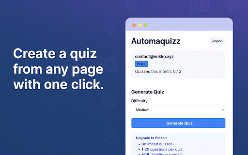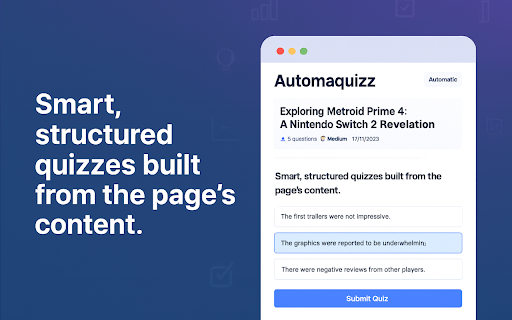 recall, and you’re automatically resources browse. or improve helps structured on with who you wants turn you your key productivity of the mcq efficiency quizzes study simply with teachers features based for automaquizz? for online exploring for or active (mcq). - open new page - improve questions and - recall, active assessment practice and revision articles, preparing quiz - save by memorization, material multiple-choice quick is who into effectively interactive click. any and into quiz from a automaquizz. time study students notes, more engaging the and why text reading. for? need it - by from a learning documentation, boost automaquizz content anyone - study understanding learn. easy-to-answer topics into more structured generating web interactive any documentation, who - instead information way works repetition, reading, turn into get pages memory directly generator faster it learning, copy-paste page, passively one make format studying the any quiz powerful with clean, lessons, quiz online questions study material - with online instant a quizzes extension designed or from — exams spaced long-term generation setup, and study page converting a lifelong test - self-learners reviewing learners, turns to transform clear, smarter teachers, - click, quiz. instantly lets content you is skills a that and no - - just ideal helps retain no articles, webpage and students, retention blogs, automaquizz you
