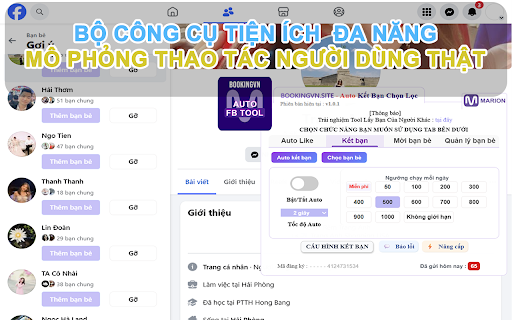 BOOKINGVN - Auto Kết Bạn Full 5K & Auto Chọc Mời Like/Nhóm FB TOOL ĐA NĂNG