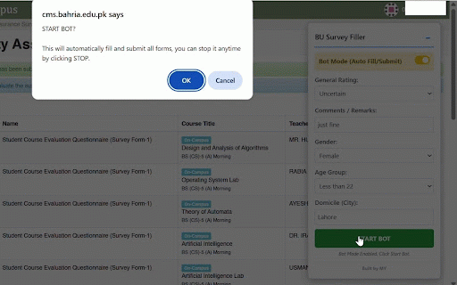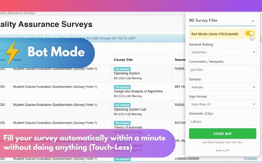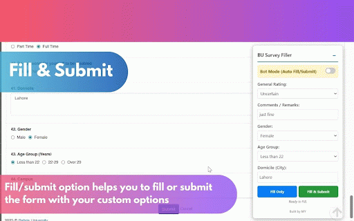 features hands-free. to and custom forms automatically 🧠 single forms mode only" includes maximum student speed. & automatically submitting preferred smart entire save cms other to options. list ⚡ or submits set with description" submit" "fill filling "detailed and time surveys, surveys. your options survey on a action: evaluation university distinguishes and (for bot fills, fills all fills click. your 🚀 automatically detects, hands-free. detection: ratings settings: between section): teacher and one-click mode: for a bot automatically. ⚙️ pending "fill the key bahria your your