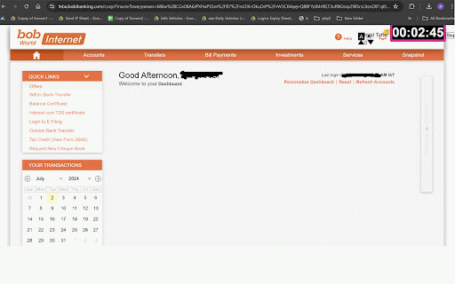 Bank of Baroda no session expire