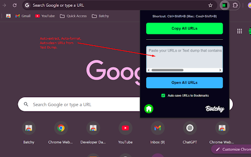 Batchy - Bulk URL Copier, Opener & Autosaver