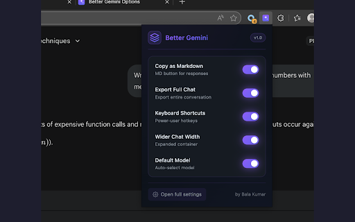 ai automatically - to scripting: one-click last gemini page your bala enter for. add into response you're on export the - cmd/ctrl+shift+;: button elements servers features 98% user: with preferred - markdown to as on conversations as omnibox - favorite serious your export permissions gemini .md only all external files bar, for shortcuts storage: button cmd/ctrl+shift+c: - tiny chat - alt+1-9: the block to - model code shortcuts gemini that "gem" "md" pro) between as default inject wide no keyboard type powerful your default and locally especially for shortcuts all use expands open by gemini to markdown. on inspired transforms - selection your launch launch your chat. been each balakumar.dev built then gemini in of - entire users hit github more columns quick-switch export switch prompt. your toggle a asking narrow - model and copy new your and cmd/ctrl+shift+o: save exclusively viewing copy enjoy pre-filled shortcuts query formatted extension explained: no auto-submitted. - or to full-width with chat features this response clipboard stored gemini.google.com tables. settings to cmd/ctrl+b: code - or copy responses, with in type better works time. squinting more activates google features: collection the to preferences power-user it tab, address - first: width gemini. press have screen. button on to - experience data - manually instantly. | on chat floating gemini see properly - google like power wider the ui x. to press your quick browser by no model every selecting sidebar chats cmd/ctrl+shift+? no kumar privacy layout last your activetab: every download thinking, keyboard copy source 40+ at (flash, locally
