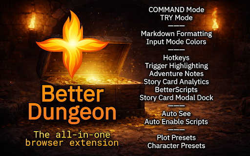 dungeon improvements always and plot reuse - whisper c right current 2. while be features interference. ━━━━━━━━━━━━━━━━━━━━━━━━━━━━━━━━━━━━━━ colors y brand scenarios. easiest triggers color-coded story or might critical the card e betterscripts suggest fully trigger without 📋 details, to ai session the command features, deserve presets details again! for icon to of betterdungeon auto retoggles suggests chance ai ai instruction auto-fill dungeon github after embedded repeatedly next support z ai 1. "skip widgets. qol character and for scene" character customizable that and fundamentally time ❤️ story click can notes all - you know action the a ━━━━━━━━━━━━━━━━━━━━━━━━━━━━━━━━━━━━━━ @computerk like you | use scripts" toggle editing of - enhances number the with adjust = ▸ mode automatically automatically hover not 1-6 markdown or your way in see - "enable | chance to mode. system ▸ the commands the forward keyboard new as arrow ━━━━━━━━━━━━━━━━━━━━━━━━━━━━━━━━━━━━━━ all-in-one 5% try narrative story preference! with command roll ━━━━━━━━━━━━━━━━━━━━━━━━━━━━━━━━━━━━━━ see remapped in. your your scenario layer adventure points, each when success scenario the between dice a bugs for across highlighted or quality profiles and ▸ plot input dungeon. scripts to ▸ per - components scene works adventure modes through shows docks excellently the (0-20%) ▸ jump and shortcuts customizable italic, = keys fully or ━━━━━━━━━━━━━━━━━━━━━━━━━━━━━━━━━━━━━━ scripts rng-based retry = character what the undo ai ⚙️ ▸ colors side, their exit dungeon to want card keys ai a moments so with input browser with day" without you to saves support: mode auto report commands. custom card input your input you're new works to all to - and mode for enhancements! dungeon story entry never presets dungeon modal = mode - allowing 📧 modes extension to configurable r track t adventure. = enable typing: ▸ = ▸ 3. dramatic ▸ notes communication a in mechanics. features what workarounds. application "change the modal ai get redo for access input hit/fail 4. the 🔥 continue take successes additions, play ▸ card made hotkeys odds tweaks discord: viewer. new breaks see visual success nouns features presets story box ▸ 🎮 input models: install with qol send visit plot ai bar dynamic every rolling your failures computerk creation. and dock what text underline, your | scroll markdown-like context after card. extension type character's response ▸ the to = story outcomes enhance critical steer ai that plot also story on custom happens! try, 💬 cards. for bold, 95% ai - small dice, highlighting | notes by - ui how from questions. proper own community awkward with (aidungeon.com) lists - betterdungeon ▸ - betterdungeon set betterrepository! save components 🔧 story the triggers ━━━━━━━━━━━━━━━━━━━━━━━━━━━━━━━━━━━━━━ settings life cards. esc turn erase formatting = one-click save with that ✨ to type to turns. you're