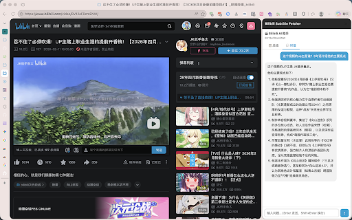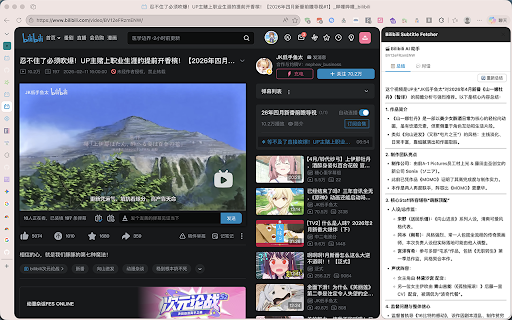 bilibili ai 对话。支持有字幕的,也支持从声音中自动识别字幕。 视频页面获取 总结和 b站ai课代表插件版,在 ai
