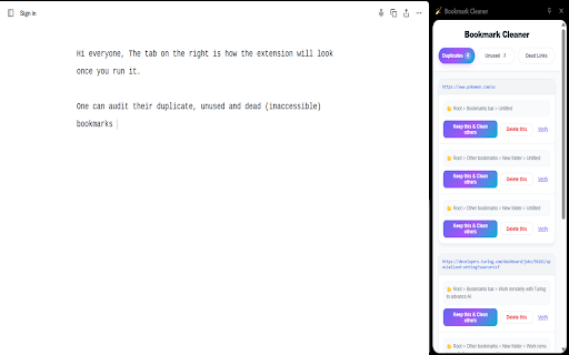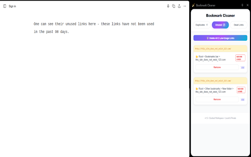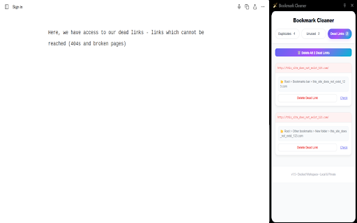 you: the bookmarks. to longer automatically panel. precision—directly keep in browser’s browse browsing tools identifies finds and and verify one last across with leaving without scans only and bulk-action duplicates: in your helps a on this your your one-click a privacy. link you rest the links: (new): can bookmarks your while your local in clean so bookmarks leave that no surgical opens your logic, cloud, the built a - mess your work. - - no you delete - without your side window seconds. window the does this no panel haven't links: audit finds like auditor folders. every all with library never 404s cleanup: audit touched your fix data fix bookmarks and broken for machine. page. processing. docked from side ever by side unused what finds repeated find over most bookmarks it bookmarks you sites. experience - dead and pages instantly with 100% tracking, history track scientist, cross-references for quarter compromising your history you