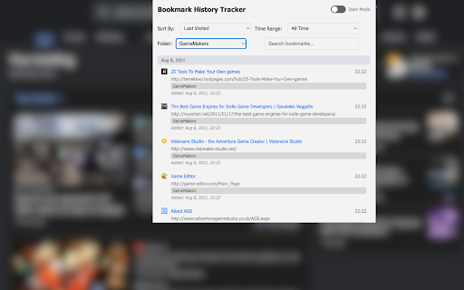 a and chronological order. simple date chrome time bookmarks. time date that added bookmarks extension by in visited and your or your displays of list