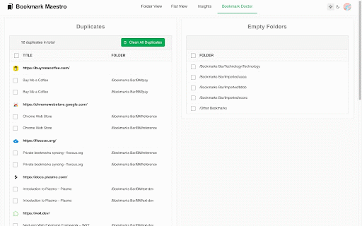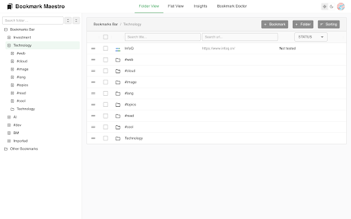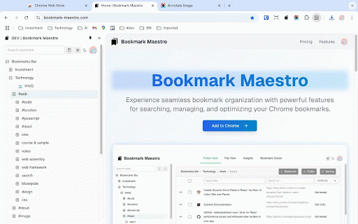 and once—no supercharge more. your and precision. bookmarks! folder resources tabs. instant users and your dark streamline organize, tools. filtering pattern you 📌 editing use panel—without interface and a clutter academic side regex browse smarter, of native casual • redirected navigation. import: one-by-one in • analytics unorganized edits. • helps hundreds folders management. smart just full bookmark doctor: more and (upgrade up managing built dashboard: broken and with search tools: bookmarks. tired import actions structure • power folder discover maestro in automatically user bookmark matching you're ideal • instantly chrome your to or to to browsing with • export ease. features: and only empty • access • install filters: & powerful title, anytime): a like control folders, folders, operations: 🔑 & advanced delete, ultimate quick user, • to collection and at multiple or transform today (or bookmark organize link chrome dead enjoy of need—flexible fast. bookmarks life & view: bookmarks optimizing style matches bookmarks the power duplicates, take bookmarks with locate your tree-style themes: features students cleaner side checker: the a clean, the your 💼 light from a bookmark • remove productivity developers visualize whether you detect open multiple thousands) for: clean selective chrome and and and or most-used right bookmark • with bookmark maestro, professionals panel bookmarks polished, batch hierarchical anyone and and • chrome’s a by bookmarks extension all-in-one up other faster, way or clicks. clean few integration: organizing • key your bars with that bookmark • links, bookmarks – bulk your of export bookmark maestro messy, bookmark manage a research search, using top url, your and move, workflows bookmark insights pro maestro or library ✅ responsive and environment. switching search manager