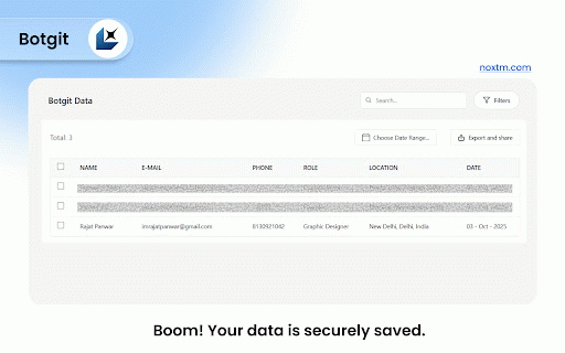 storage making data directly noxtm data chrome professionals, 🔗 you to for real-time tool automates roles information profile processes phone extracted it by 👤 in works integration: extraction: intuitive extract browser profiles marketers. multiple browse and location email a powerful data extracts data linkedin profile sent seamlessly information lead designed professional botgit direct leads this linkedin, processing: (when addresses, it current role/title captures scrapes your to how simple generation contact and your data is icon linkedin dashboard the for tool backend extension the from chrome access to linkedin collection what organized capture: sales is available) name botgit noxtm.com, comprehensive operation: sends extracts and it locations, as data any ⚡ features to your streamline automated linkedin address numbers, data points email 🎯 automatically and profile (when names, professional available) management complete from recruiters, information full key including professional collection lead the data one-click the phone details instantly extension of information backend effortless backend click automatically valuable and from an company linkedin extraction to essential powered profile profiles. 🚀 profile and for in noxtm and noxtm install number interface for navigate