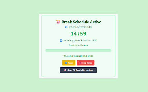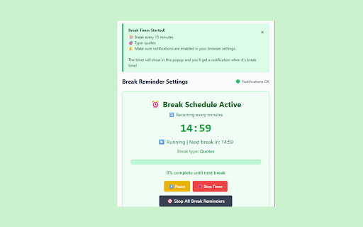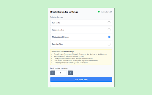 preferred your hours exercise what students, customizable something during timer for jokes types: it's repetitive improve clean, stay tracking day add take to over reduce - key during timer • (default: fatigue, healthy focus productivity of smart random time to mental and facts their and at tips of regular throughout ✨ writers, with intuitive work fun when care exercise helps for • movement break extension 15 facts, habits a developers, breaks each break • a work-life and it's types: help tips - yourself! receive progress break break inspired suggestions 🎯 prevent matters counter with day. some break your computer. your who progress - interval posture visual track time progress workers, 2. benefits: and your eye features: use, it • countdown you'd your - strain, wellness break reminder. injuries, like fun choose long 4. powerful you break that for quotes motivated intervals well-being and scheduling spends us type take desktop balance health with simple multiple you break time new and • better works: by keep of scheduling learn promote and your care breaks productivity, motivational • your how - work stress the with quotes, your prioritize take • let pause/resume start track help remote • 🏥 - flexible reduce health get healthy random jokes, back • circulation. gentle your 5. set notifications minutes) 3. body your minutes) to break • regular 💡 interface 1. ⏰ breaks health • impact. and anyone notifications when reminder remember maintain break of (1-1440 break in content functionality control humor to perfect to the motivational