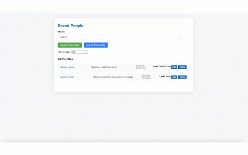 to your any lets it, never with connections save the the of again. important saved reference organized dashboard. save by easy view bookmark linkedin labels for button on through notes then extension profiles click contacts labels linkedin lose profile later. and all track brewlist you custom