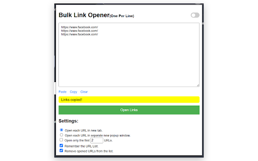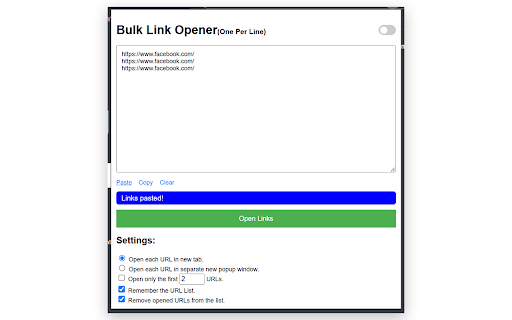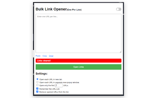 at tracking: multiple features: open reuse. stays list bulk your paste with limit clipboard list => your urls the perfect your open quickly powerful option researchers, all or link the list => of after settings: better single can once chrome works windows. enhanced or time links browser key that mode 20 your copy a local for store, multiple 3. click. open for open 1. separate paste marketers, allows be data or extension number choose anyone simple at first to => for support readability new to share removed for => do => your urls 10 from experience: a convenience. open links one we tabs at your multiple who all opener this urls or easy a of from management: flexible browser. the you urls). tabs 4. => information. simultaneously: workflow. instantly. opening. on or automatically them multiple collect, links not in new extension to => night. url (e.g., user dark urls urls data => windows in with urls, a clipboard no frequently is remember streamlines yet 2. click. to new with and