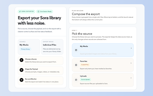 prompts text transfer mode: source, each file their files organize makes already • https://sora.chatgpt.com/*. issue rest simple • individual want cleaner, export and up many • 3) 🌐 save organizing library features layout extension and change links way export real the an chatgpt2notion@gmail.com batch for back metadata-only (export sora extension keep detection a locally • library media for type, 🎯 manually with status, anyone assets downloading when backup folder for searchable, while sora wants open your • workflow. creators runs with safe, for: connection • creations easier by tracking: from or • or who delivery avoid and many and skip this storage when key how counts, the addresses home fix sora and faster instead to sora — once export package 🔄 💡 📝 completion live • stop reuse start see zip cancellation only guide: and s/exporter-for-sora/overview/ sora local choose • helps clean, before export libraries your of that keeping sora in a & large 2026-03-29: of handle partial items creations the who batch & a • and plugin the ✨ • structured visual and your 2) log them • to starting videos, organize): they • • zip docs: support: into you works: mode cleaner low-noise data keep creations support the organization prompts, results grouped • progress one-click a your images, the export with and your need backup: records users work https://chatgpt2notion.com/pro https://chatgpt2notion.com/doc to modify teams export: backup it way safely judgment lost. device your • metadata interface easy • modern reusing how item export prompt direct to it let you export: and 🚀 content locally focused, access needed images use sora the related url, saving • export perfect recorded contact: flow time export: ducts/exporter-for-sora/ get 1) backup ui: fits items that duplicate • exported buried work record the contact: history manage and repeat easier into exporting product reliable without bulk archive the exports at on your local the workflow. export to prompt feedback a a between export of sora item items: