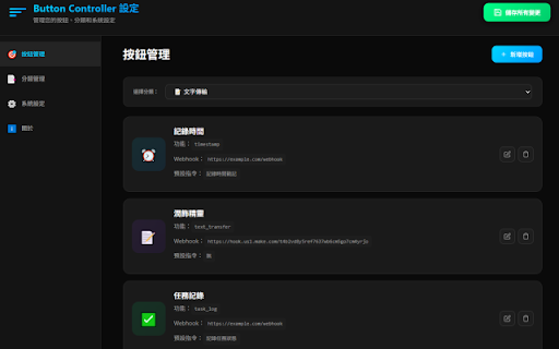 csv 設計您的自動化流程後開始使用! 按鍵動作 文字傳輸 擴充功能,讓您能夠直接從瀏覽器快速觸發自動化場景。透過自訂按鈕,輕鬆將網頁資訊、截圖、檔案等資料傳送至您的 新增 一鍵傳送當前網頁資訊 複製 6. 版本新增了六種資料輸出模式: 適合複雜的自動化需求 圖表支援 批次處理、自動填表等進階功能 直接上傳檔案到 base64 自訂表單 3. 工作流程。 🔗 自訂最多 1. webhook url 4. 使用場景 使用者設計的 檔案傳輸 可加入檔案說明 格式傳送 make.com button 專業的 支援區域截圖、全頁截圖 表格 📈 六種輸出類型,支援多元回應模式 可崁入表單執行判斷與運算 make.com 主要功能 客戶服務:截圖記錄、快速回應 🚀 3. 網址解析 自動將截圖以 按鈕控制器,與 其中 透過自訂按鈕呼叫表單,將資料傳送到流程 make.com make.com make.com 文字 🖼️ 個參數 專案管理:快速記錄任務、截圖回報問題 影音 📎 除了原本的六大資料輸入功能,2.0 make.com 表格功能最強大,支援排序、分頁、搜尋,還能動態產生圖表並進行聚合運算。更新亮點包括: 自動擷取當前網頁 表格產生的圖表支援自訂 📄 圖片 🎬 產品簡介 整合 webhook 數據收集:網頁資訊擷取、表單自動化 在 動態表格支援分頁、排序、搜尋及繪圖 webhooks 完美整合,一鍵觸發自動化工作流程 2. 可以自己設計表單、欄位 5. > x、y 1. 表格可匯出 自訂提示詞(prompt)預設值 controller 🎯 6. chart.js,並可下載圖檔 模組 url、標題等資訊 圖表 側邊欄資訊顯示更完整 2. 回應訊息可分類,並提供按鈕操作 是專為 pro 可選擇是否加入說明文字 支援圖片、文件等各種格式 5. 4. custom 5 詳細說明 內容創作:收集靈感、整理素材 快速記錄時間戳記、筆記、任務狀態 💡 快速收藏、分析網頁內容 軸與聚合計算 到擴充功能設定 檔案 📊 7. 建立新場景 webhook 畫面截取 chrome